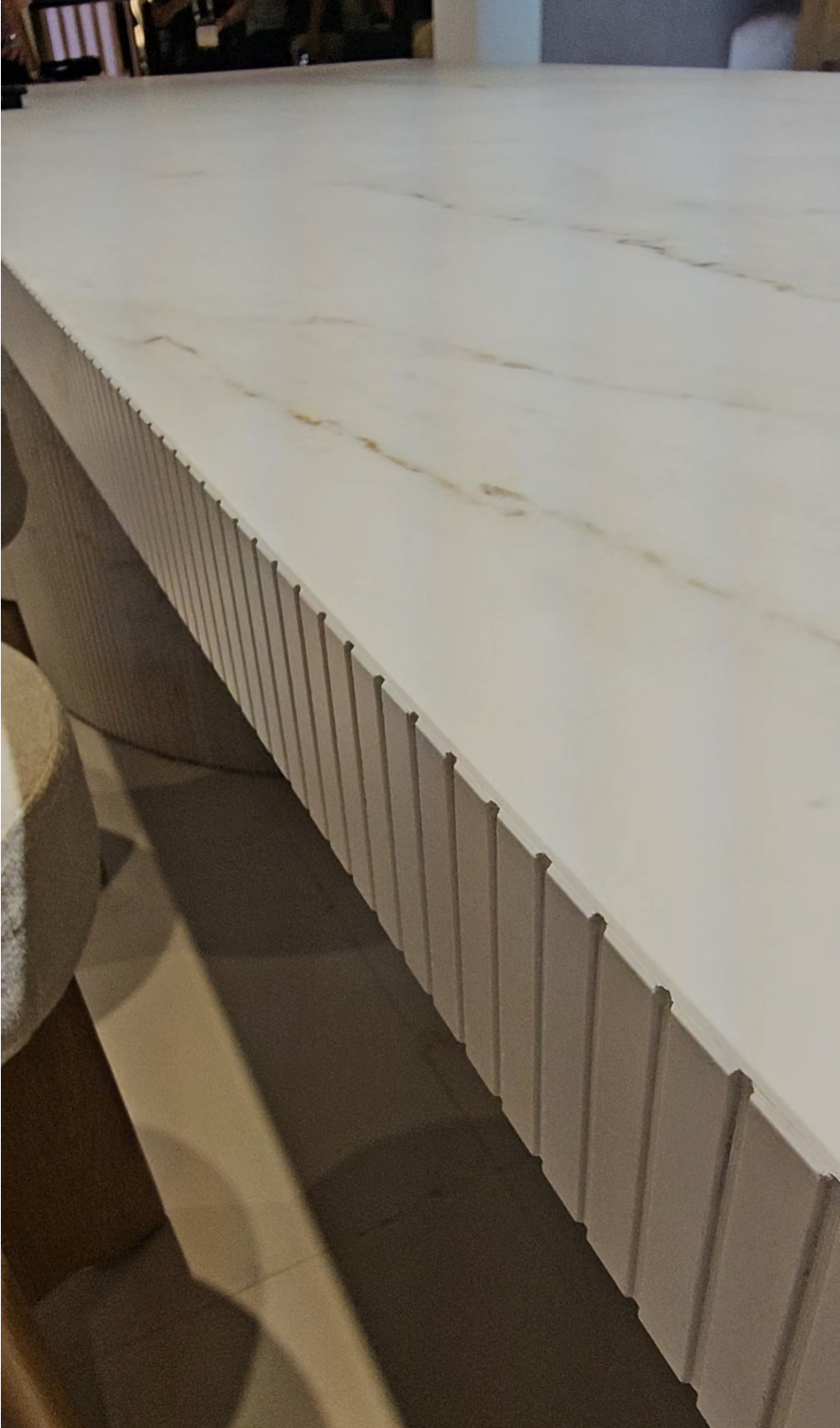 Donโt settle for average. Discover the edge artisans trusted by Lais Luz who possess the specialized knowledge to expertly craft a diverse range of mineral surface edges, from the simple elegance of an eased edge on porcelain countertops to intricately detailed carved sintered stone countertop edges.